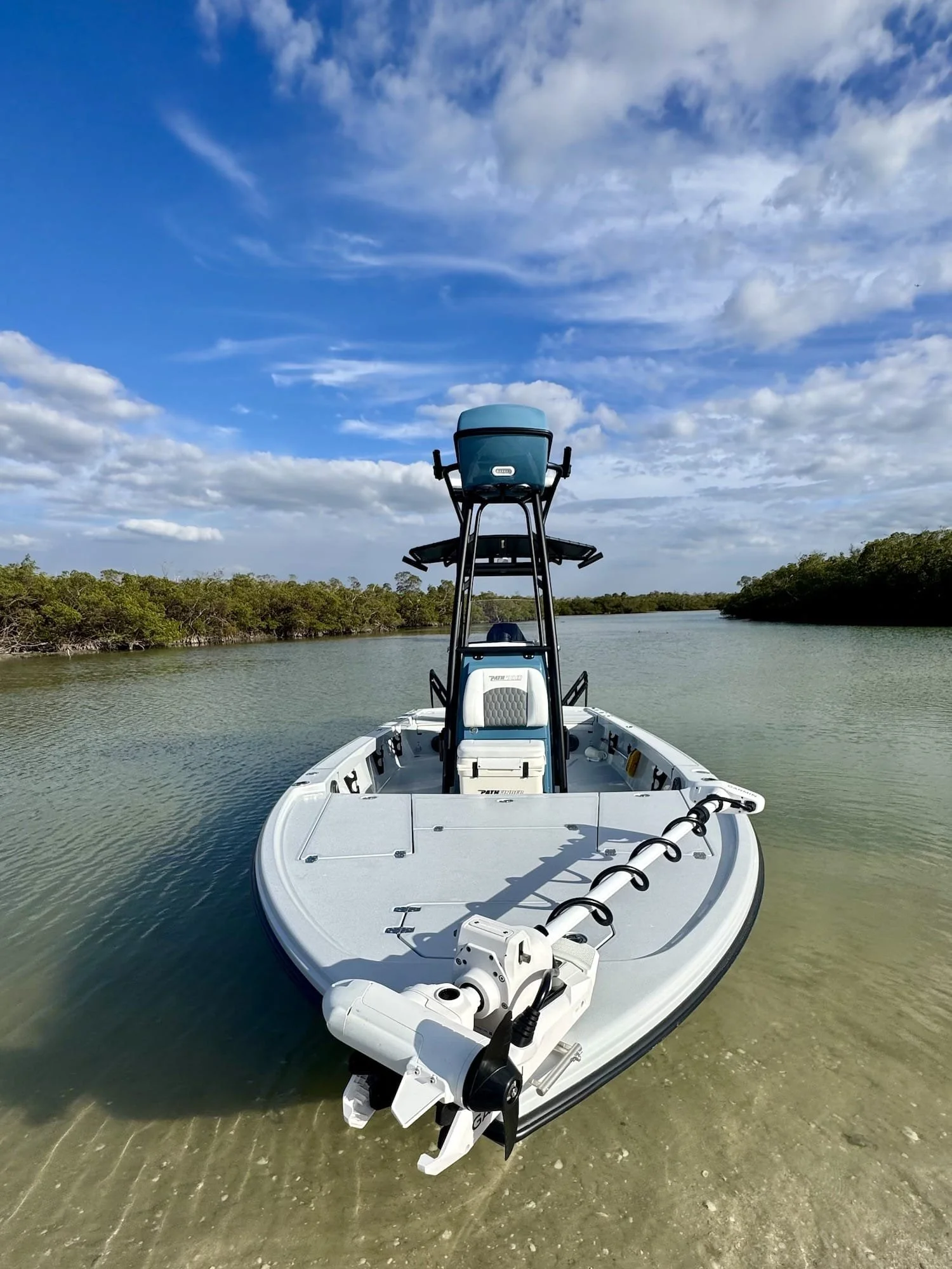 The 25’ Pathfinder 2500 Hybrid is a versatile boat, perfect for both nearshore and backwater fishing. Its shallow draft allows for easy navigation through tight spots, while its comfortable seating and high-quality equipment make it ideal for long days on the water.